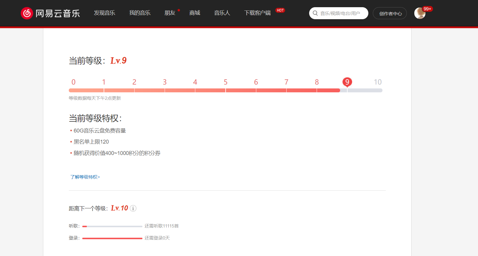 小小的炫耀一下,我的网易云音乐账号很快就要满级了,提前庆祝一下!